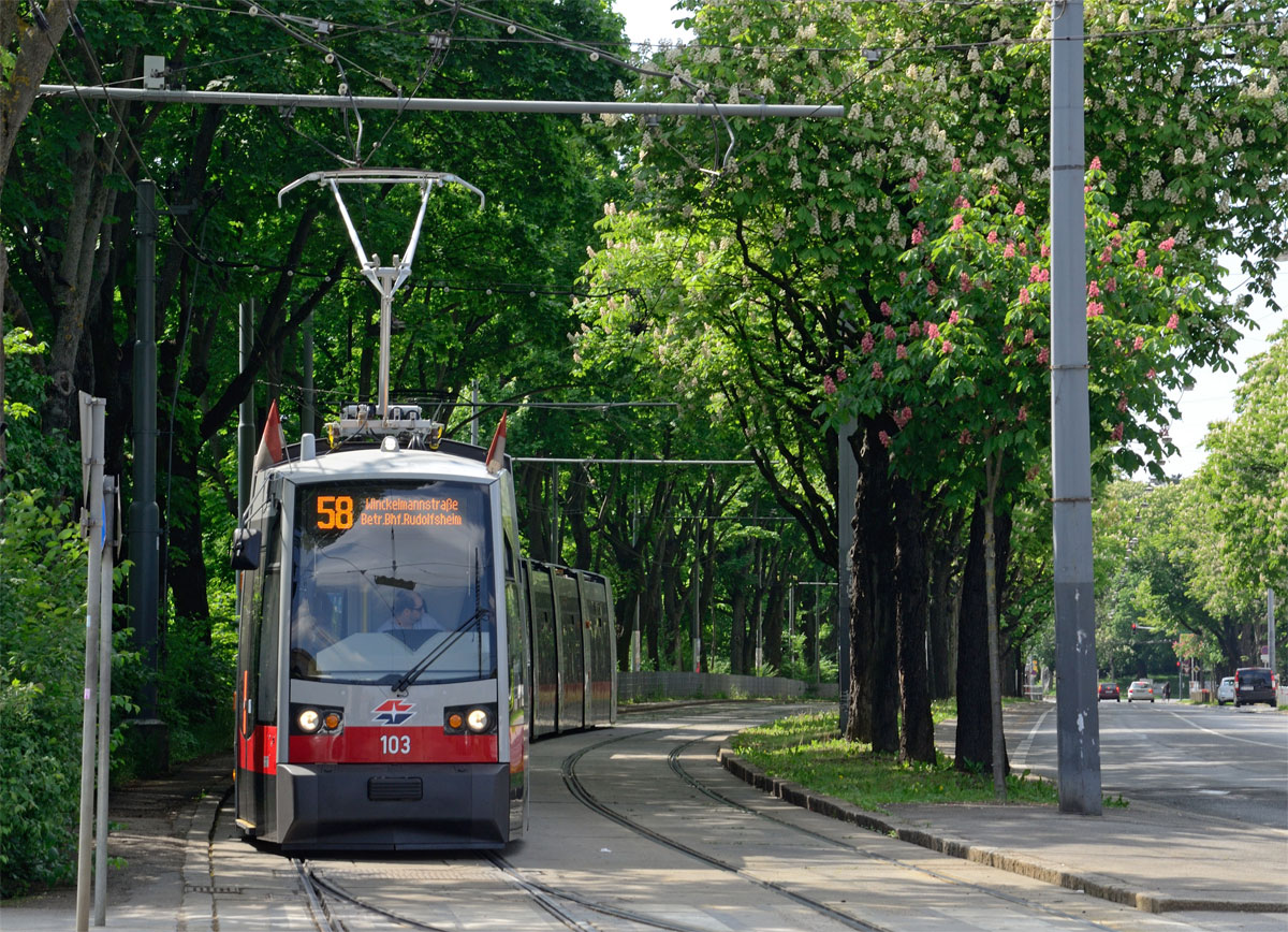 103 als Linie 58, wegen der Sperre nach dem Hauseinsturz verkehren die Linie 52 & 58 nur bis Betriebsbahnhof Rudolfsheim, Mariahilfer Straße, 30.04.2014